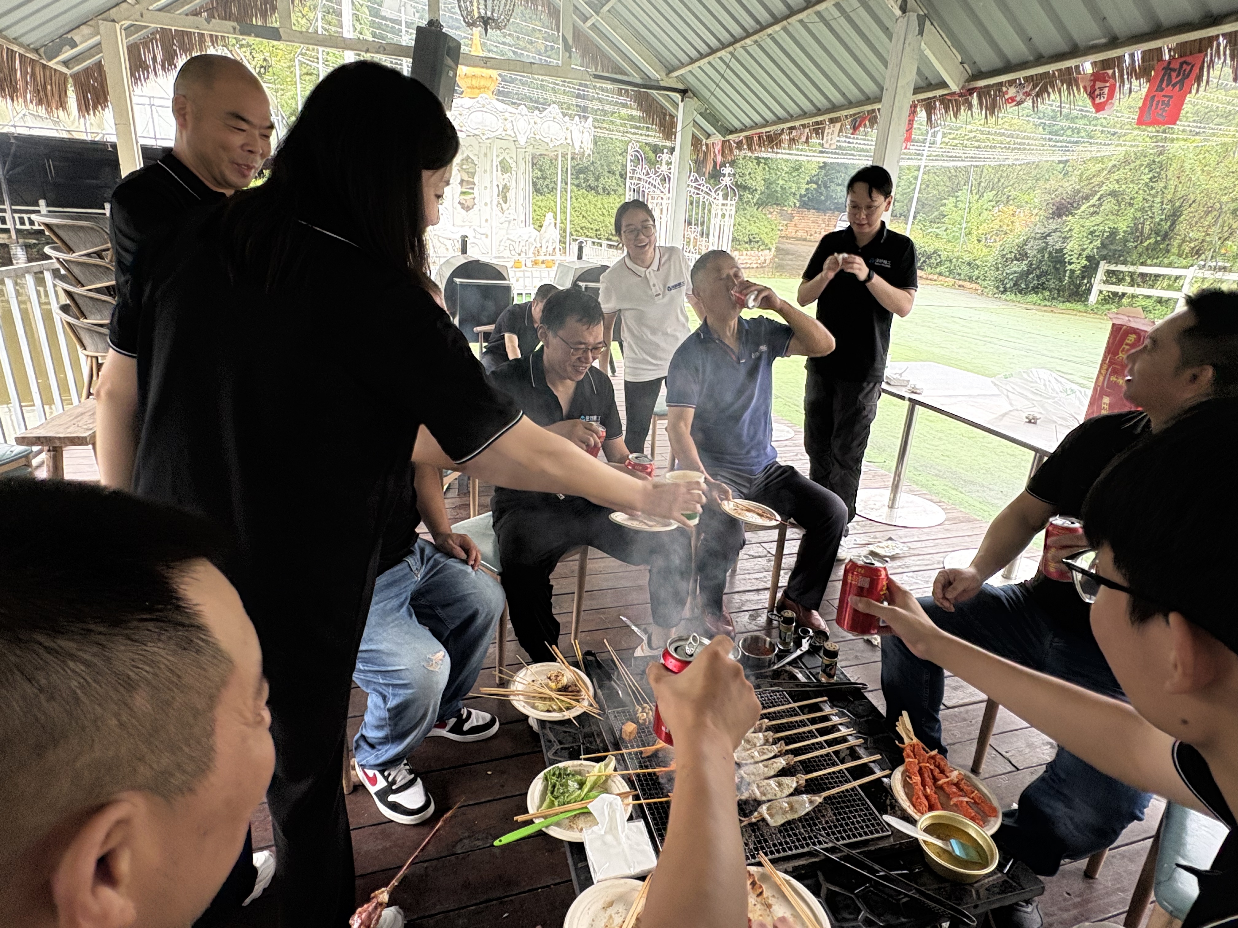 At noon, there were curling smoke in the barbecue area. Colleagues spontaneously divided the work and cooperated with each other. Some were responsible for starting the fire, some focused on grilling, and some assisted in distributing ingredients. Although the barbecue skills varied from person to person, everyone was fully engaged. The scene was filled with the aroma of food and continuous laughter.