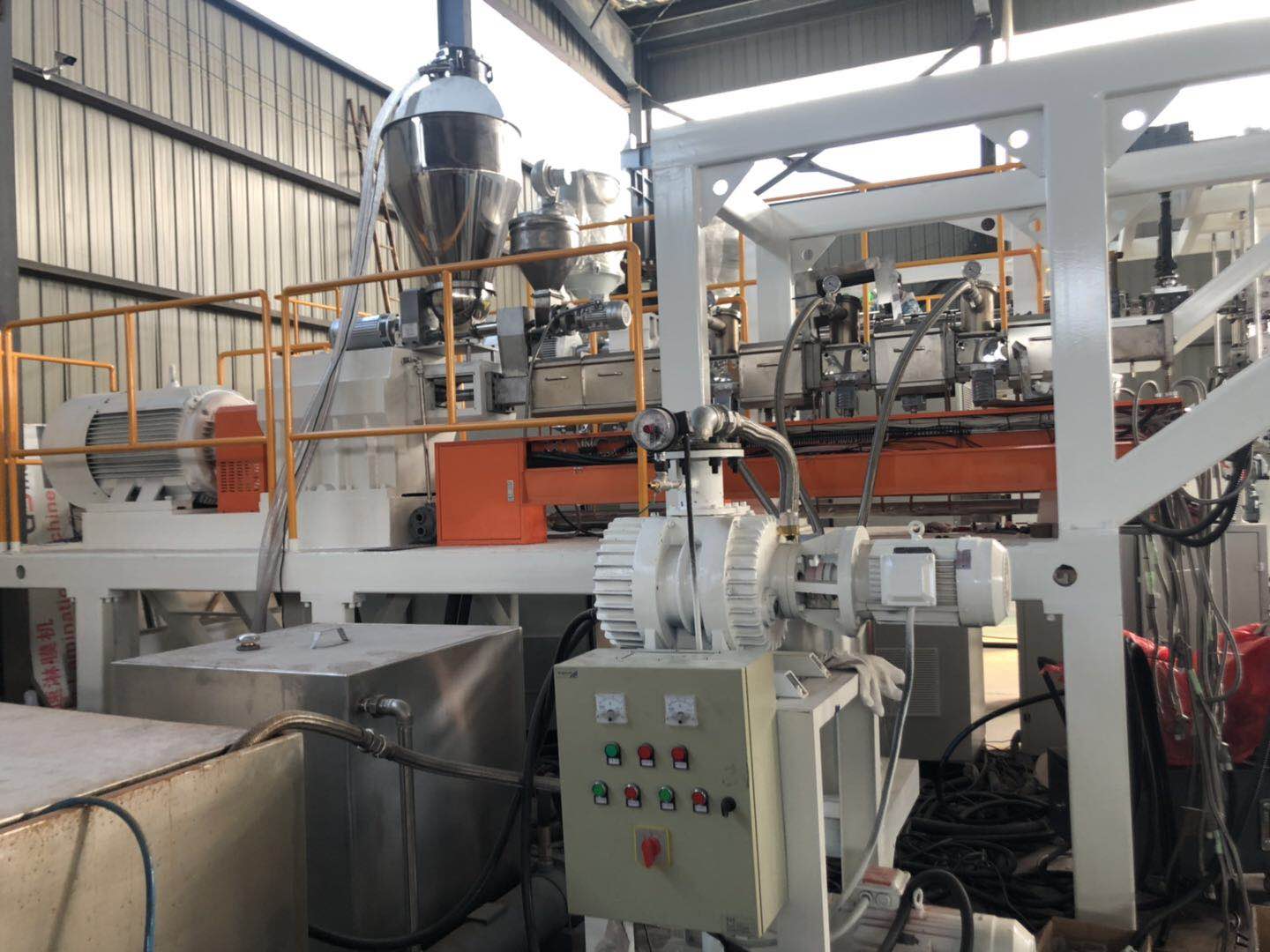 PET sheet twin-screw exhaust production line (crystallization-free drying): The crystallization-free and drying-free exhaust PET sheet unit launched by Sumino precision machinery have the advantages of low energy consumption and high efficiency. This model is produced by Sumino precision machinery. Continuously improve the upgraded products, and now have made major technical upgrades to the core vacuum system, from the original roots-water ring pump set to the roots-rotary vane pump set, which can achieve the vacuum degree, and adopts PET special alloy steel The thin-walled roller group greatly improves the cooling efficiency, thereby increasing the output and improving the toughness and transparency of the product. The operating system independently programmed by Sumino precision machinery guarantees the user-friendly and easy-to-operate type of equipment.