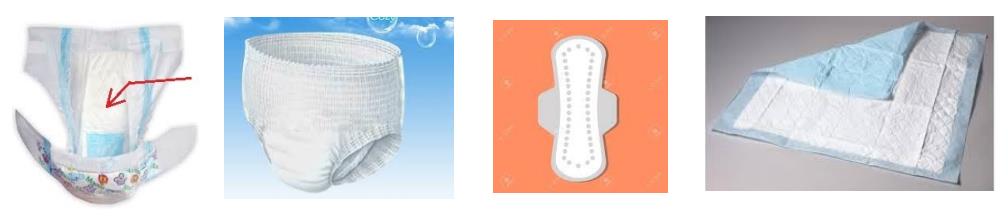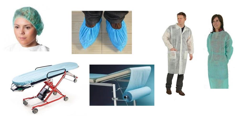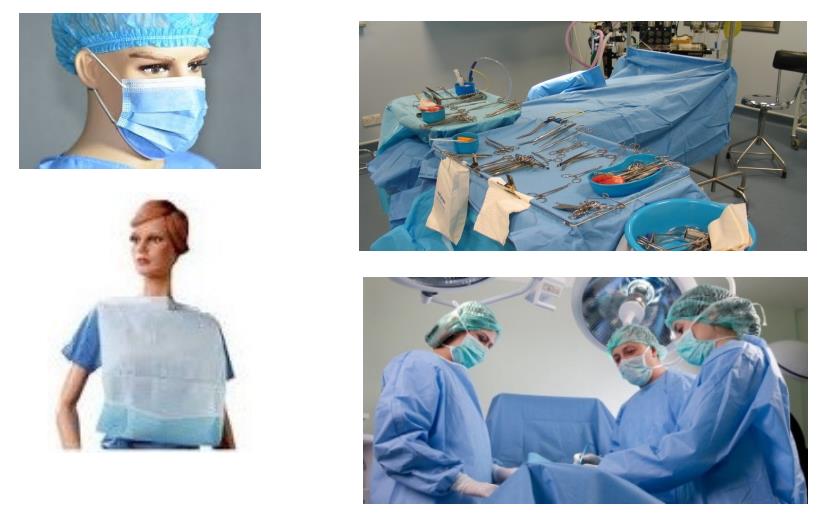 Medical Items (Liquid Stoppers/Absorbers) , such us Face Masks, Surgical Tools Pads, Surgical Apparels, Protective Gags, produced with SMMS configuration